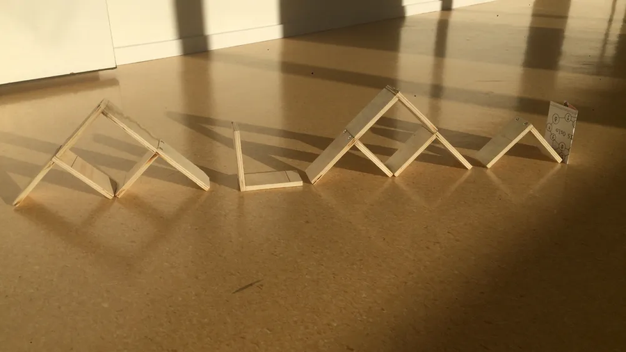 So after days of clunking struggles with the set, Alan suggests - muses almost - that we try something completely different. The room brightens. The mood shifts, we get the toy model sets and try new combinations, then make ‘em real on the floor. Clear lines - Torkel’s observations about light and shadow absolutely crucial to the new choices being made.