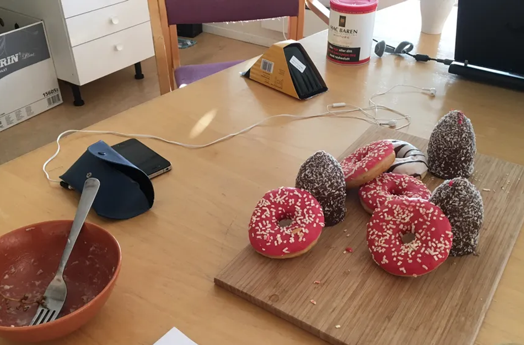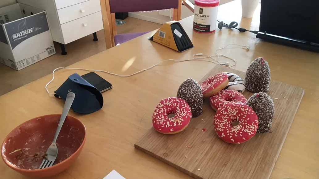 There is a scene where I play myself, Suzie plays Melanie (Feldseth) and Yvonne plays Sissel (Aune). It takes place at the Norwegian Arts Council offices. It’s super cheeky and lovely to play, but the opening of the scene feels slightly ‘eggy’ to me (this is a great English-theatre word to describe a stage moment that’s sticky, and doesn’t flow, as if it’s a bit bogged down.) Suzie points out we have a lot of other stuff happening at this point, in terms of a lively music background, so what may feel like a lull simply won’t be when we put all the elements together.