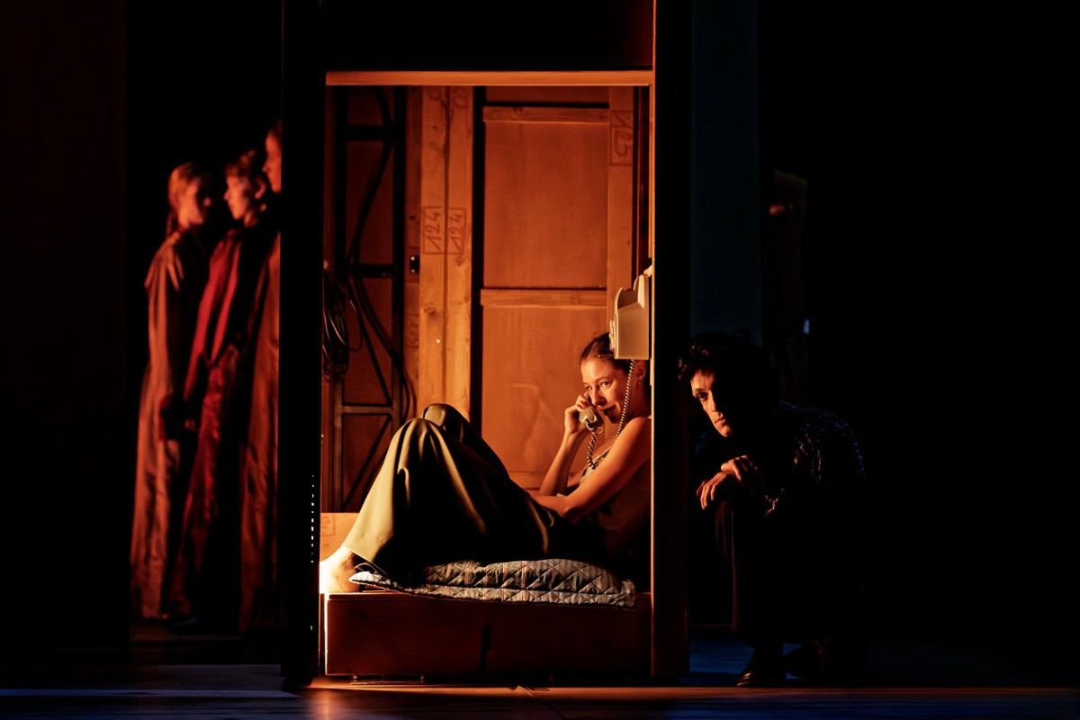 Héléna Pikon and Alexandre Boccara sing in Norwegian in their mother–son confrontation scene.