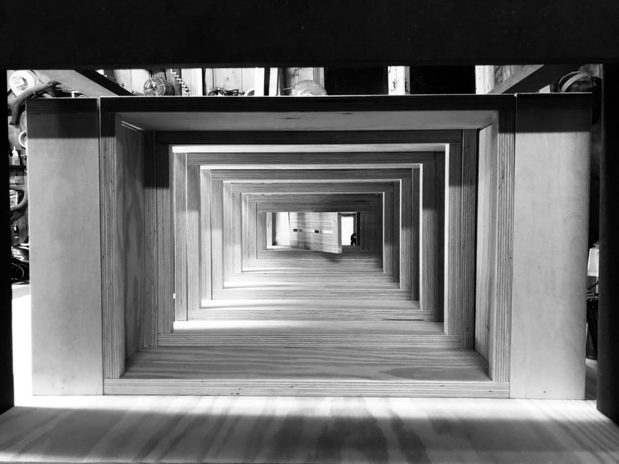If The Hamlet Complex was a Gesamtkunstwerk, its most striking element was the set: a telescopic wooden structure designed by Færavaag. Inspired by a child’s toy, the mastodon construction could extend and collapse, swallowing and releasing the performers in a space that was itself constantly in flux.